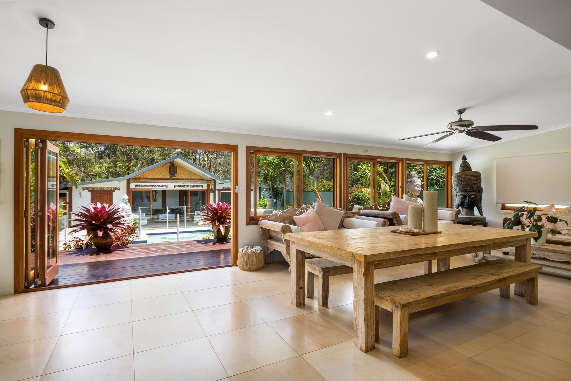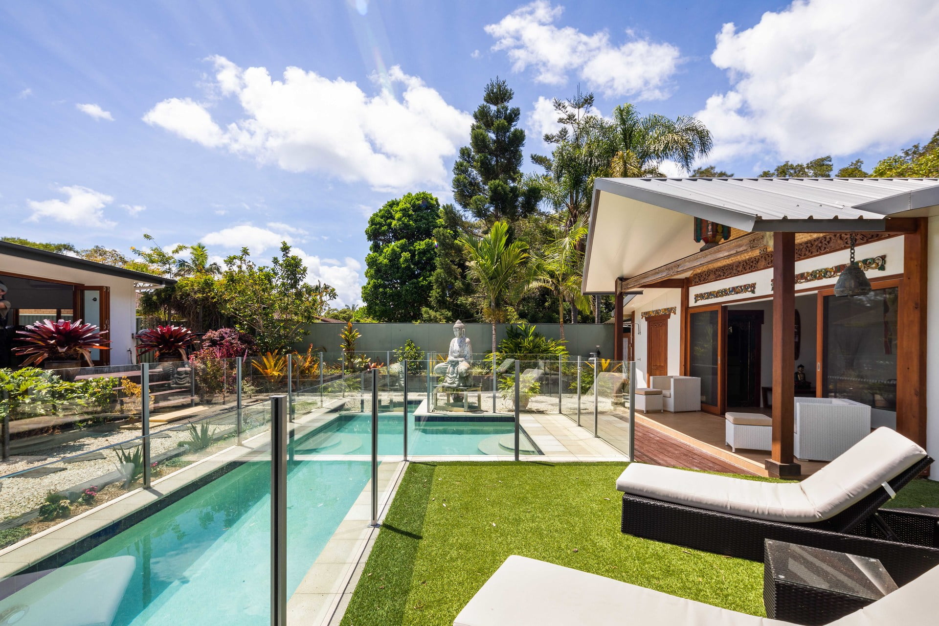This home invites you to escape to your own private oasis. Backing onto pristine rainforest, this five bedroom three bathroom house is designed for those who want to get away from it all…to a hidden paradise in Byron Bay.